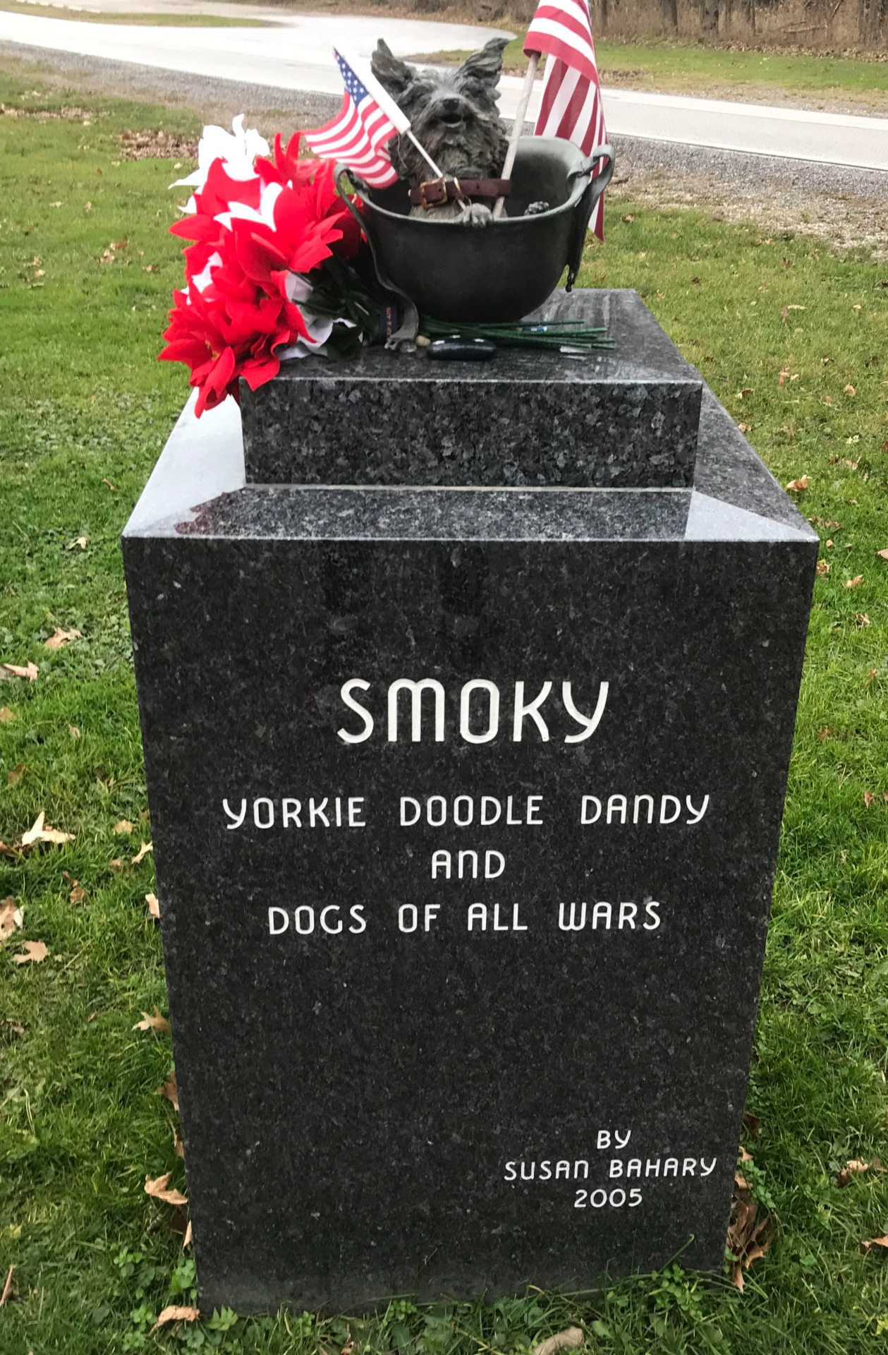 Skulpturen är placerad ovanpå Smokys sista viloplats, Rocky River Reservation Lakewood i Ohio. Detta mycket speciella monument är tillägnad "Smoky, och hundar av alla krig". Wynne har skrivit om sina memoarer som handlar om hans och Smokys liv tillsammans.